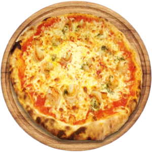 Sauce tomate, Mozzarella, fruits de mer, beurre d’escargot