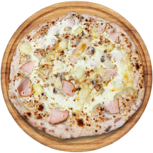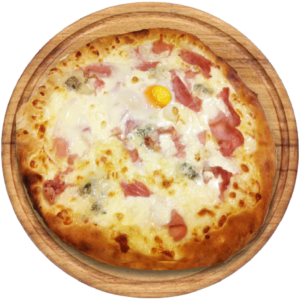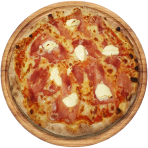 Sauce tomate, Mozzarella, jambon, pancetta, 4 fromages, parmesan