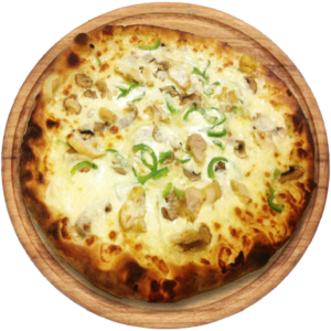 Créme, Mozzarella, poulet, champignons, poivrons