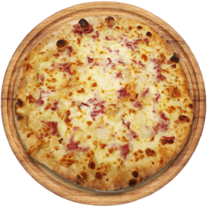 Créme, lardons, 4 fromages, oignons, parmesan