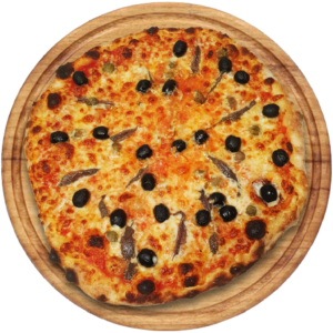 Sauce tomate, Mozzarella, anchois, capres, olives