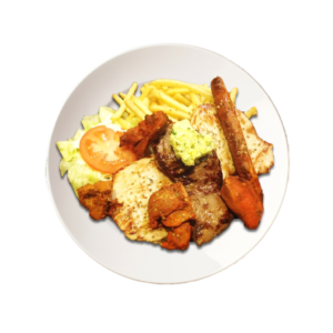 - Mixed Gril : 5 viandes grillées : porc, boeuf, dinde, poulet Tikka, merguez23.80€